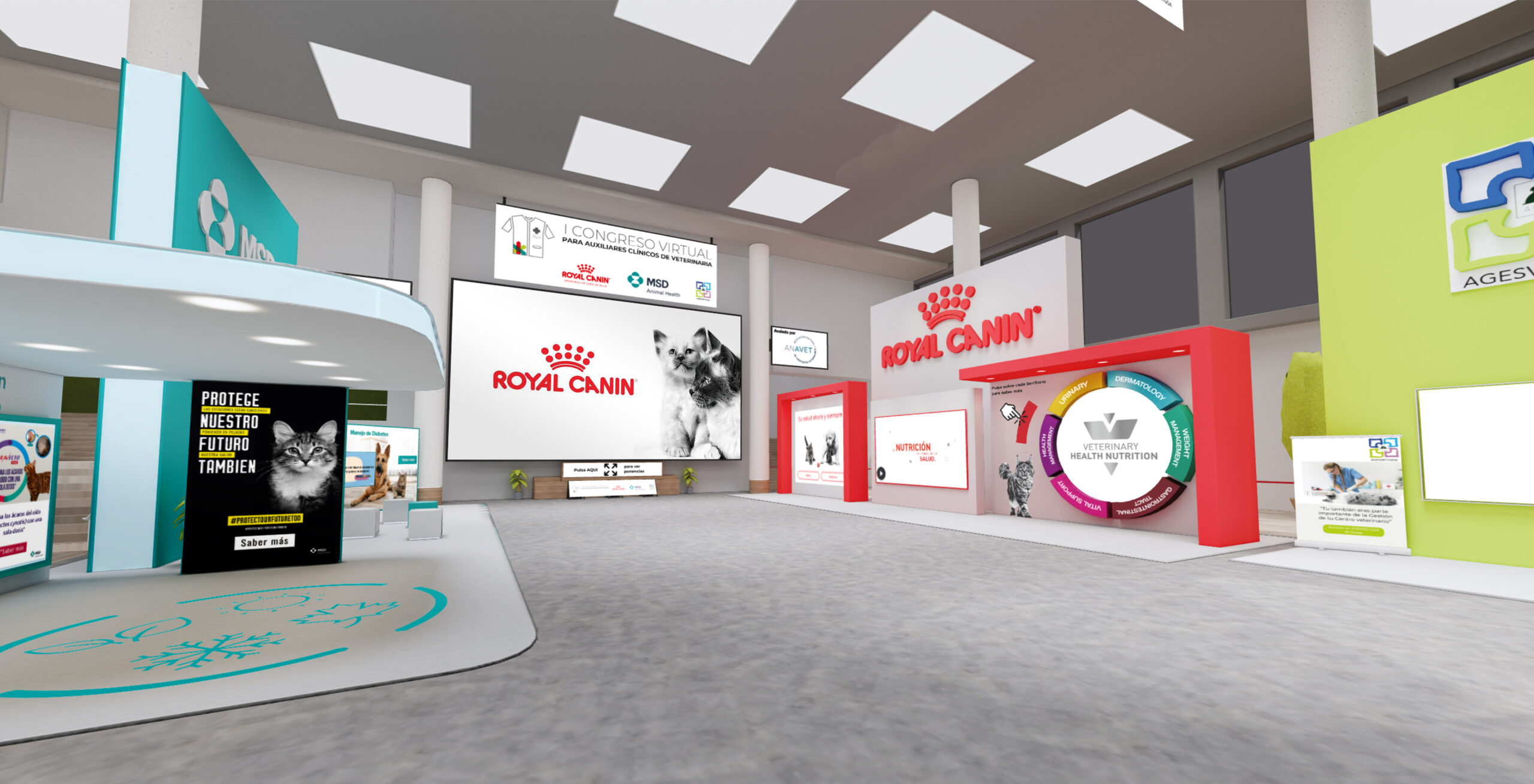 Las experiencias inmersivas amplían el alcance y la calidad del aprendizaje tanto online como presencial: en el entorno virtual, como el Congreso Virtual de Royal Canin los eventos permiten conectarse desde cualquier lugar. Combinando ponencias en directo con espacios 3D, habilitar networking digital y ofrecer contenidos bajo demanda con más valor que un webinar estático.