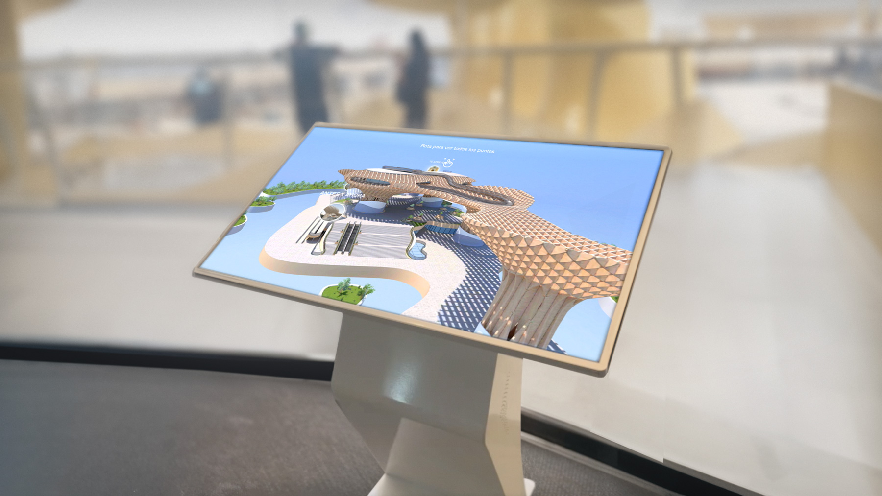 Por otro lado, los Virtual Twins permiten tener una visión a gran escala de un espacio. Son mapas e infografías interactivas para guiar al usuario y explicar visualmente las infraestructuras de un espacio. Dando un paso más allá de los mapas y planos estáticos, como en el caso de la recreación virtual del monumento Setas de Sevilla.